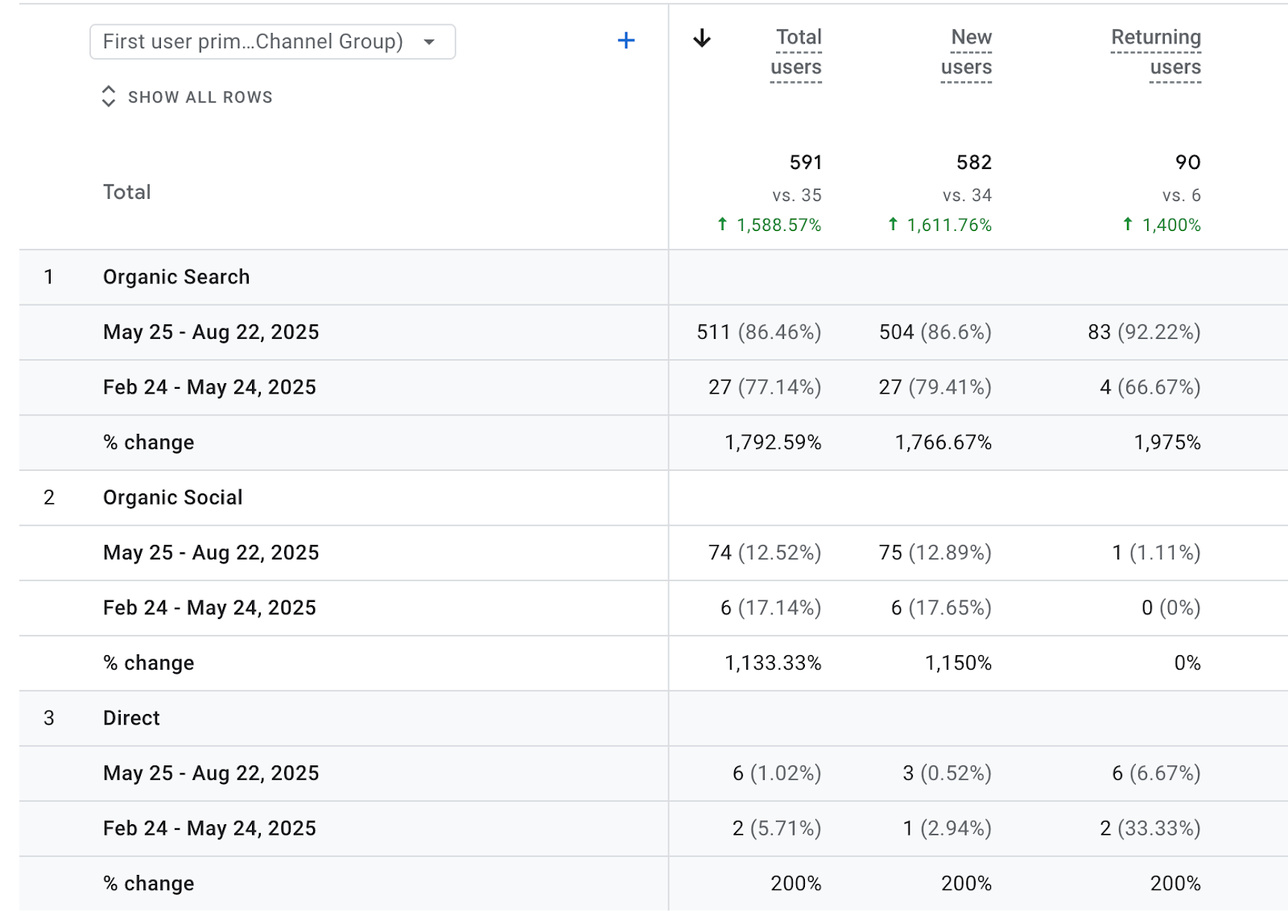Increment in Organic Total Users