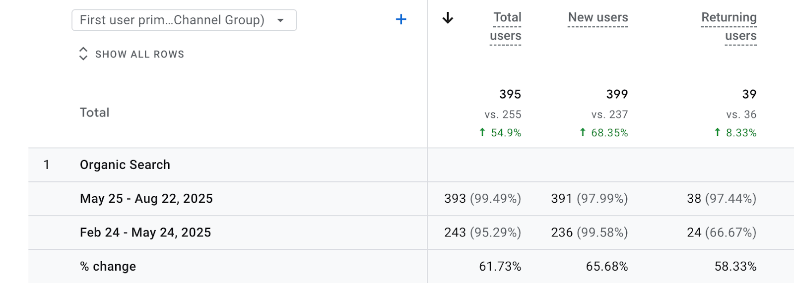 Increment in Organic Total Users