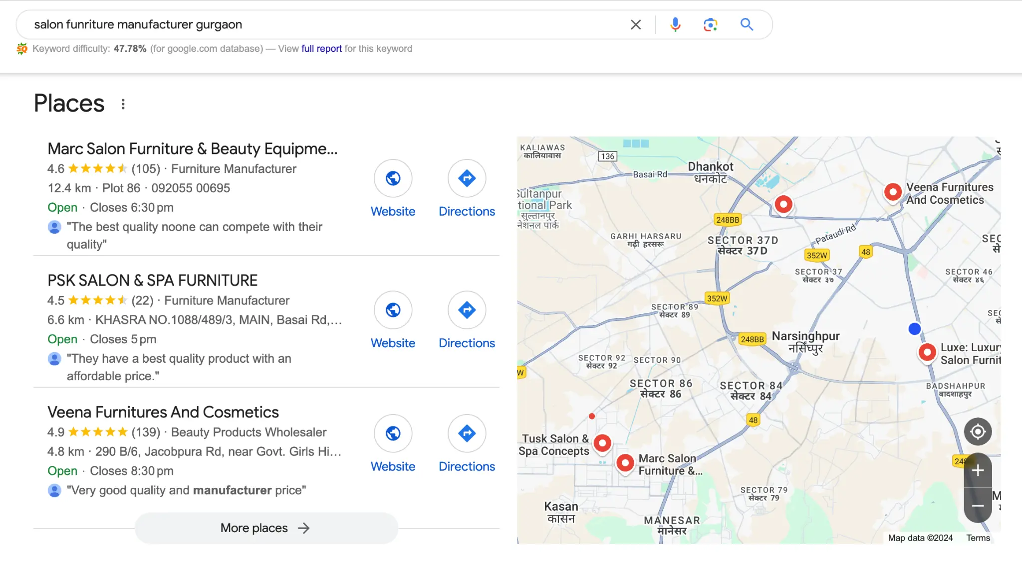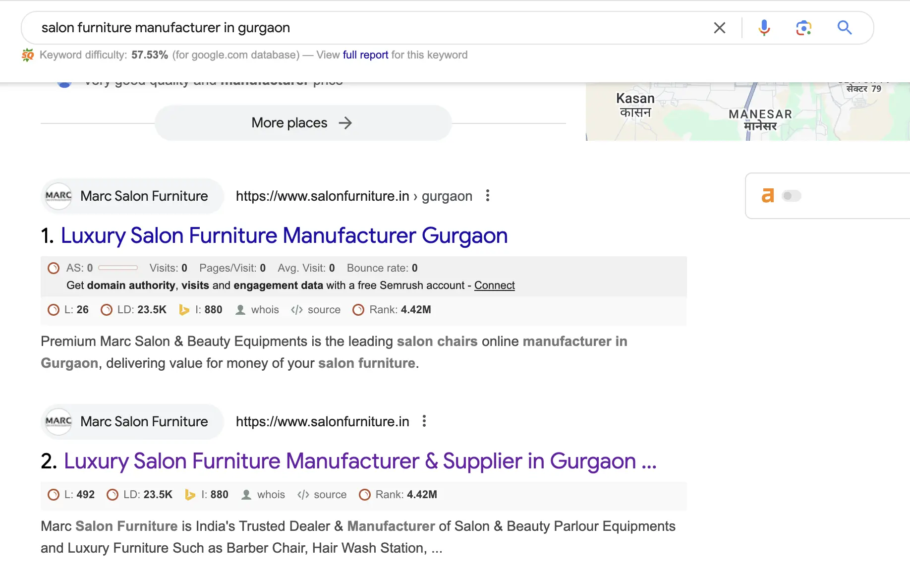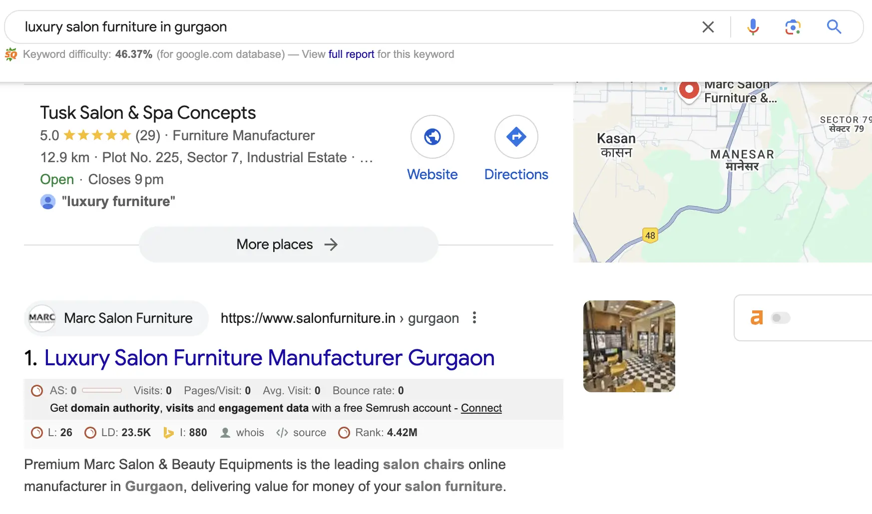 | Salon furniture manufacturer in Gurgaon | N/A | 1st Page |
